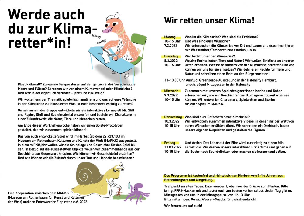 “Wir retten unser Klima!” Mit diesem kräftigen Ausruf starten wir in eine Woche voller neuer Erkenntnisse über uns und unsere Umwelt: Was heißt eigentlich Klimakrise, was ist daran so ungerecht und wie funktioniert der Treibhauseffekt? Wie kommt der Müll in die Meere und was hat das auch mit unseren ganz persönlichen Lieblingsorten zu tun?