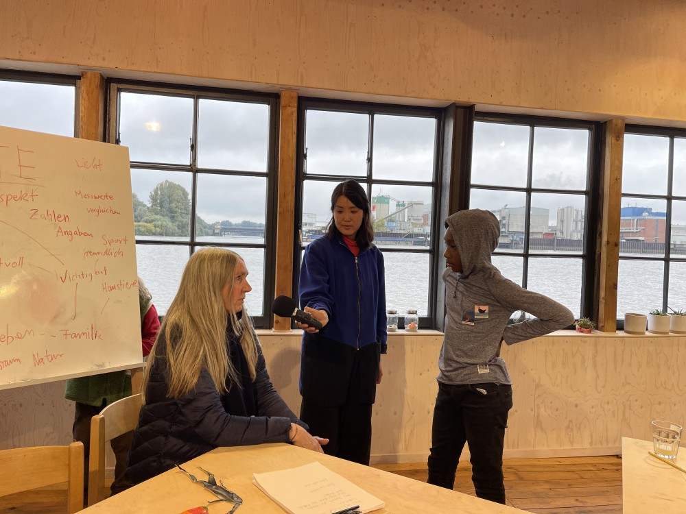 Zum Abschluss des Tages kam auch noch Karen Grell, eine freie Journalistin, die einen Artikel über uns schreiben möchte, der bald im Hamburger Wochenblatt erscheint. Sie interviewte uns und wir sie – das gelernte Wissen konnten wir so direkt an Frau Grell anwenden und führten ein super Interview über Werte und mehr.