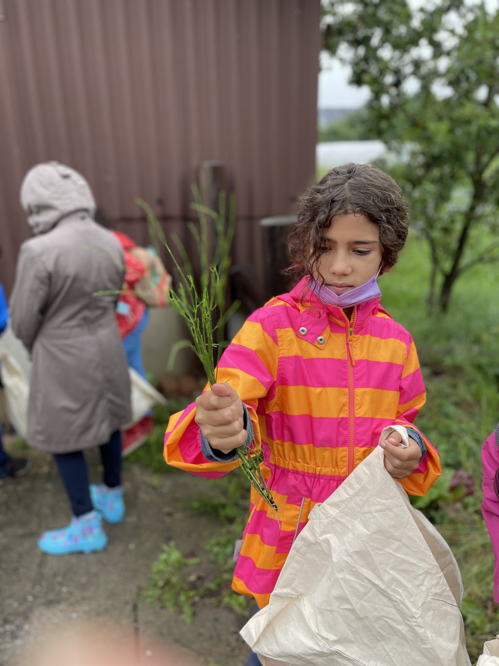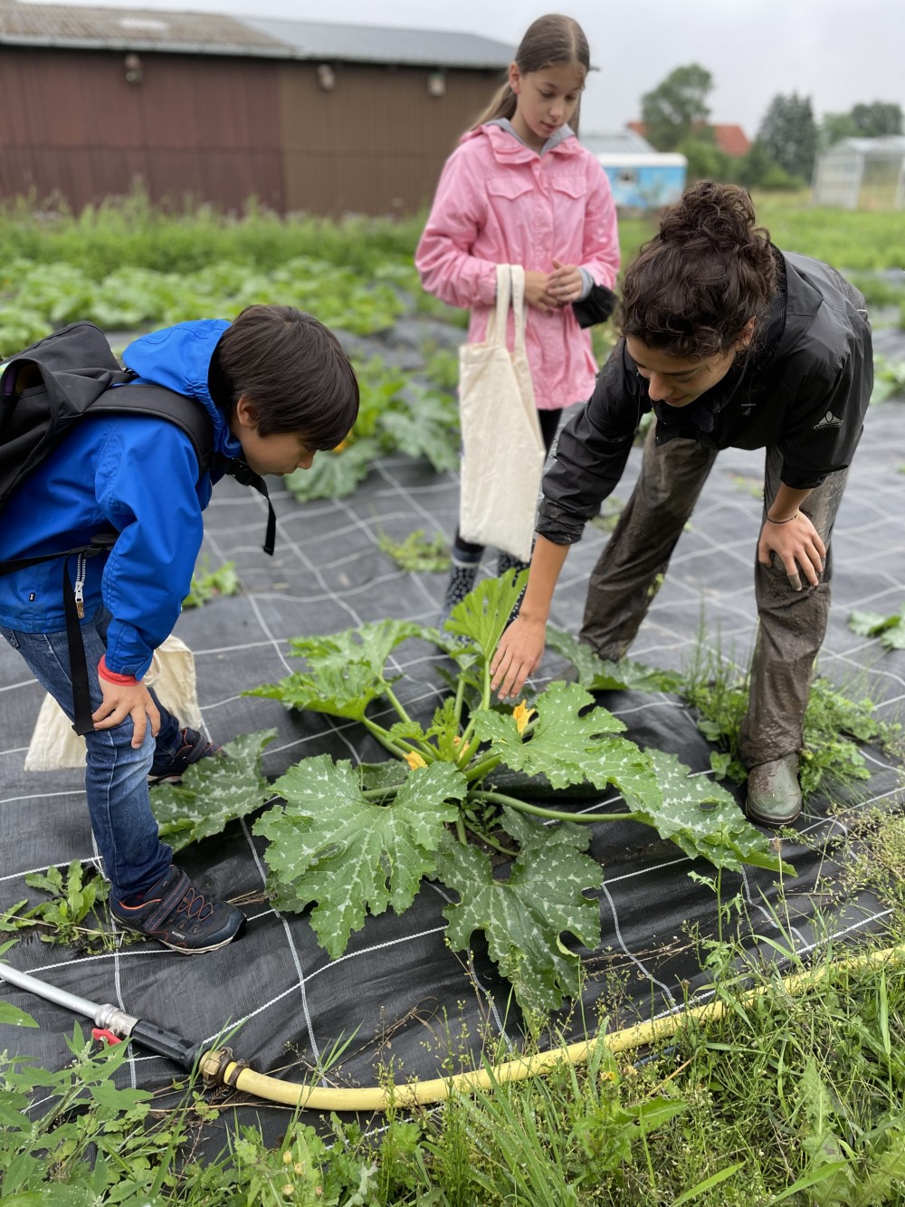 Am vierten Sommerforschungstag machten wir uns auf dem Weg zu den Ackerperlen. Alex, eine der Gründerinnen des Bio-Ackerhofs, führte uns durch die Wildkräuterwelt. So lernten wir, wie wir Schachtelhalm, Gundermann, Spitzwegerich und Laabkraut erkennen und wie wir sie nutzen können.