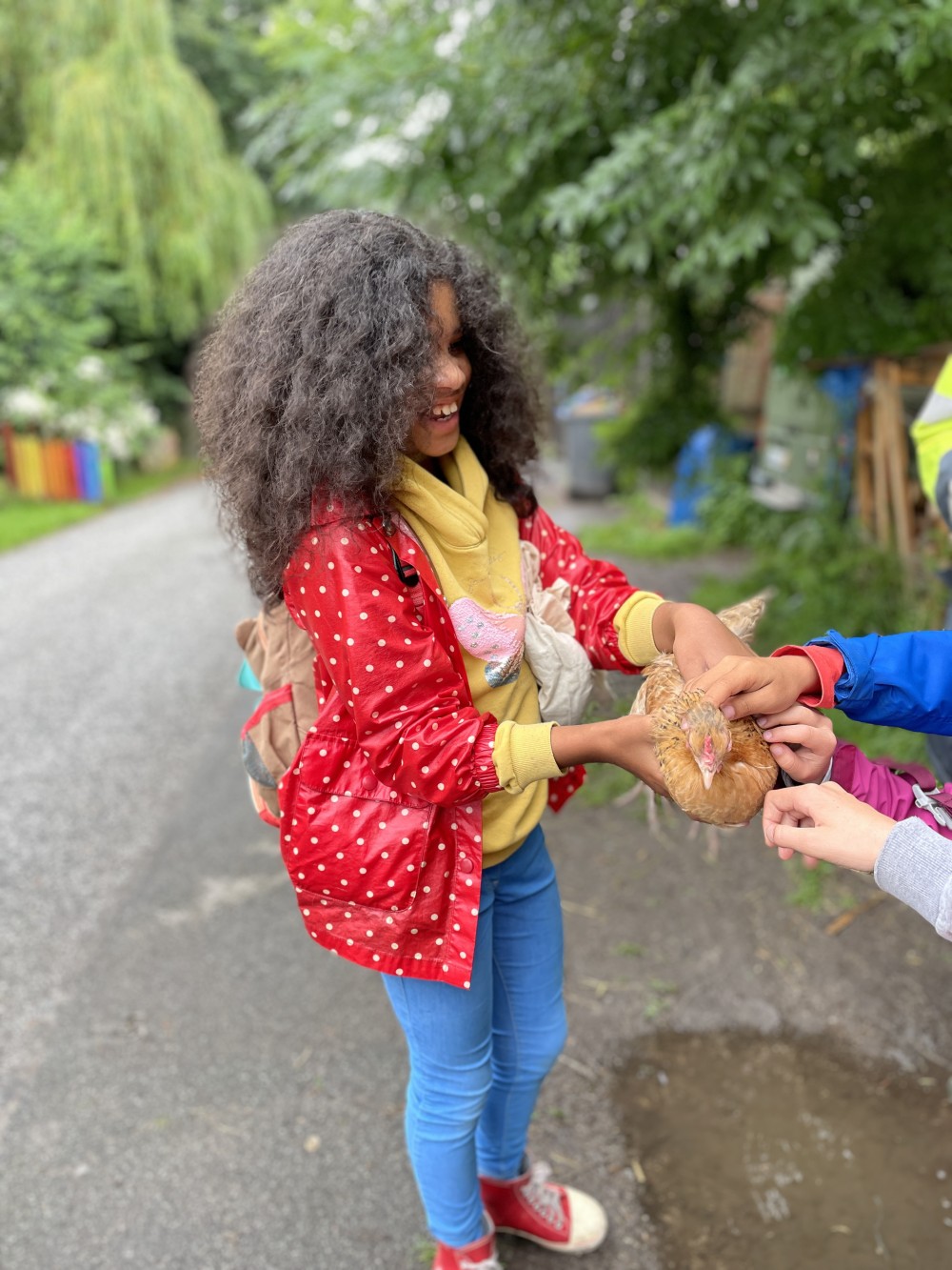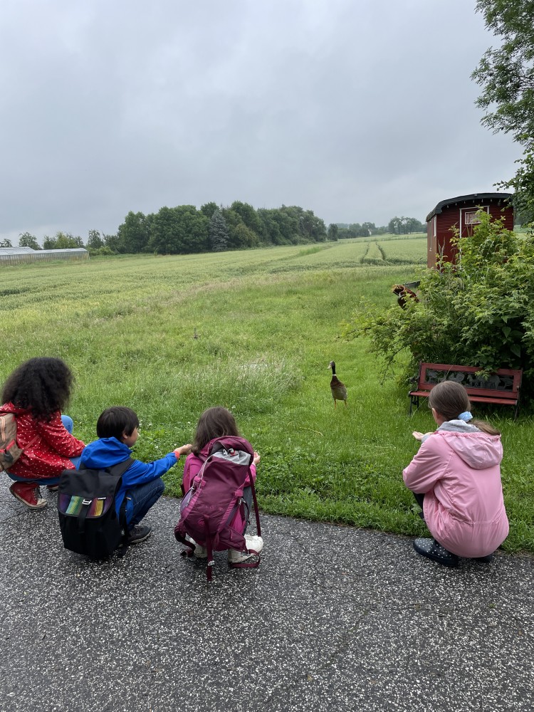 Im Anschluss gingen durften wir sogar die tollen Tiere, die bei den Ackerperlen leben, füttern und streicheln. Wir sind fasziniert von den Ziegen, Hühnern und der Laufente!